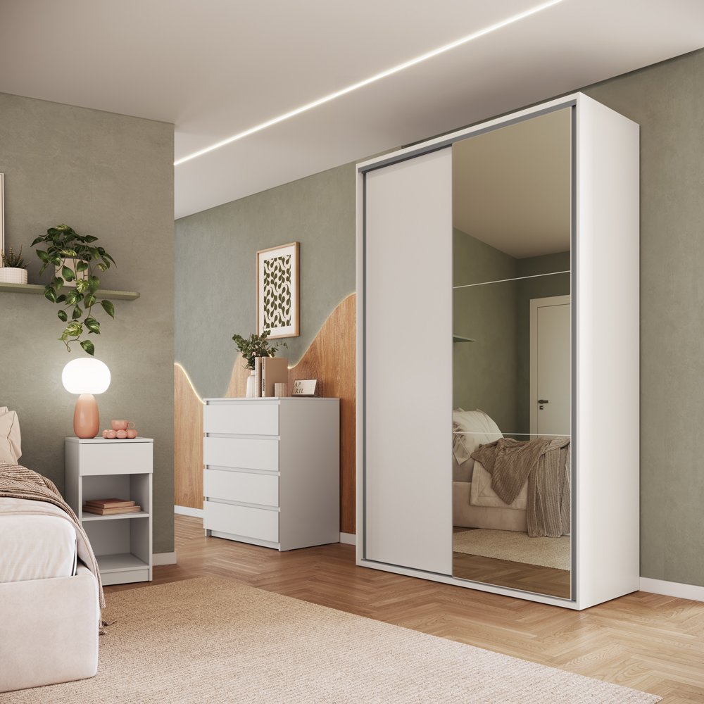O Guarda-Roupa Rudnick oferece layout interno versátil, com opções de prateleiras, gavetas e nichos organizados, permitindo personalização prática e funcional para atender diferentes necessidades.
