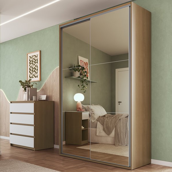 Praticidade para o dia a dia. O Guarda-Roupa espelhado Rudnick transforma o espaço com sofisticação. O espelho em todas as portas amplia o ambiente e valoriza a luminosidade natural.