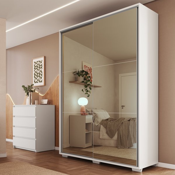 Praticidade para o dia a dia. O Guarda-Roupa espelhado Rudnick transforma o espaço com sofisticação. O espelho em todas as portas amplia o ambiente e valoriza a luminosidade natural.